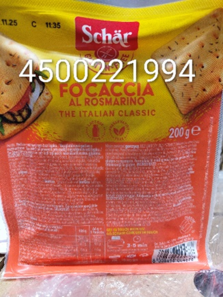 Schär Focaccia med rosmarin, 200 g kalles tilbake på grunn av manglende merking av allergenene soya og sennep